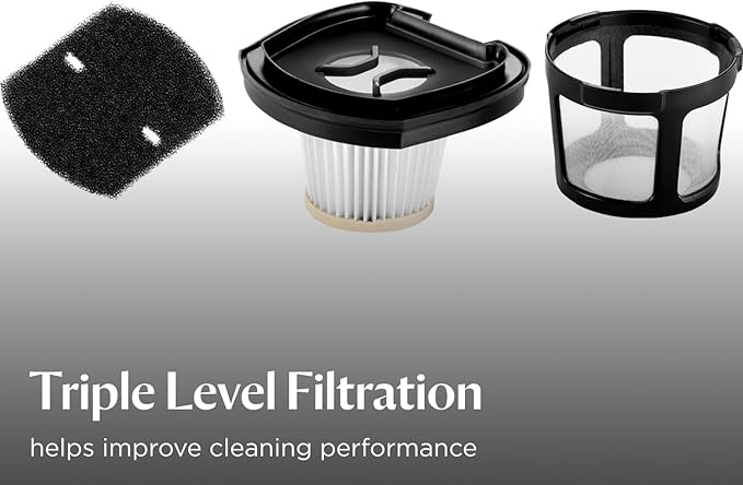 - TRIPLE-LEVEL FILTRATION. Helps capture dust and debris to improve overall cleaning performance.